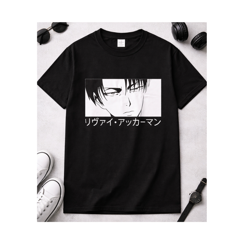 Level up your outfit with this minimalist anime T-shirt featuring a cool and clean Levi Ackerman design. The monochrome style gives a premium, aesthetic look—perfect for fans who love simple but powerful designs.