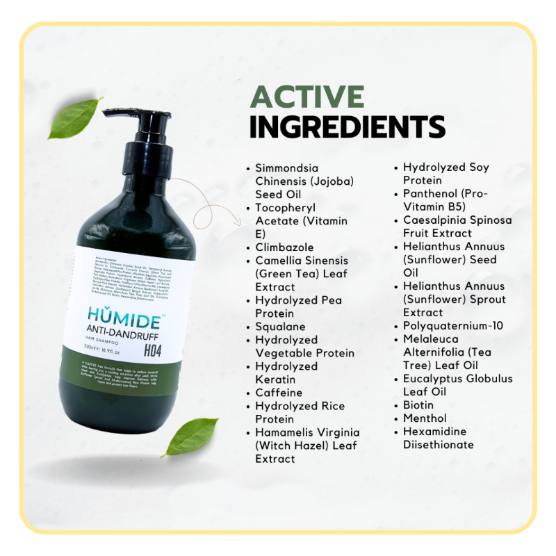 HUMIDE Anti-Dandruff Hair Shampoo is specially formulated for oily, itchy, and combination scalps. Enriched with Green Tea, Tea Tree, and Biotini, this refreshing cleanser purifies the scalp, removes buildup, and restores natural balance for clean, flake-free, and healthy hair.