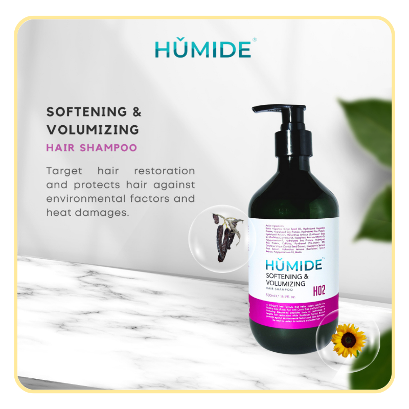 HUMIDE Softening & Volumizing Hair Shampoo is designed for thin, flat, or dry hair that needs lift, softness, and bounce. Powered by AI-discovered peptides, natural proteins, and Chia Seed Oil, this gentle cleanser rebuilds and revitalizes hair while protecting it from heat and pollution damage.